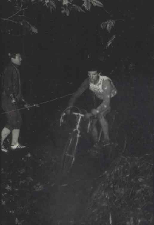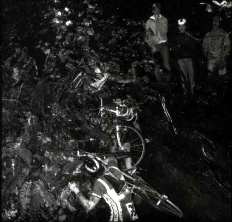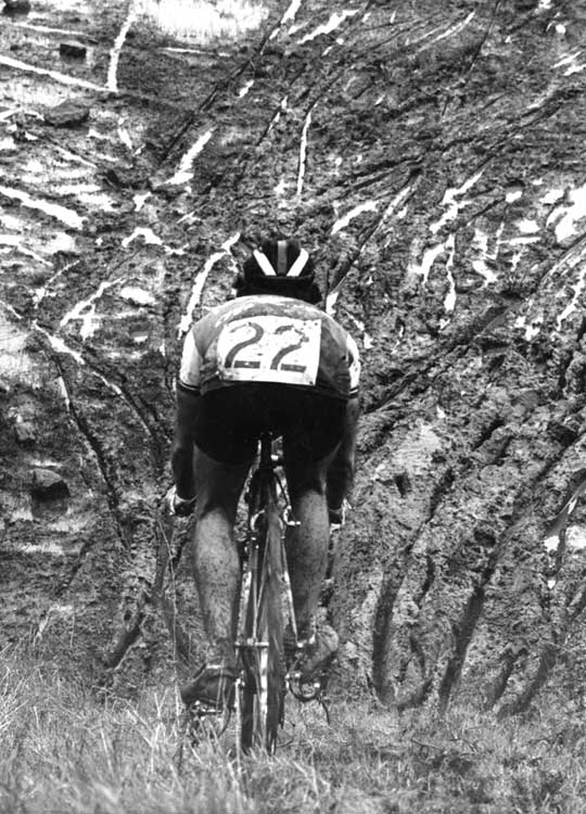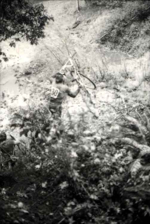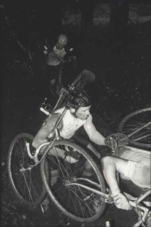 Flat tires, bent chainrings, broken chains, snapped seatposts and crashes were common. I remember a couple of juniors who tried to leap across a flood-level creek, fell in and got swept 100 yards downstream before they could scramble out and get back on course.