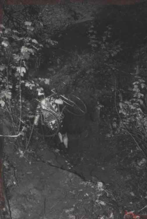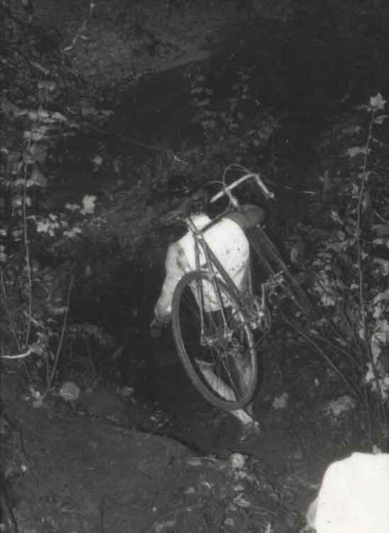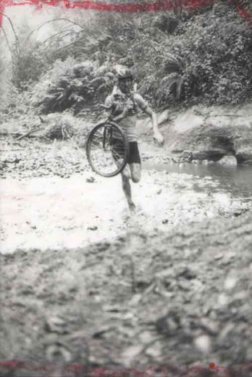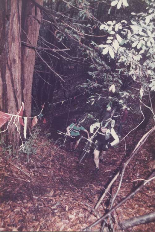 There’s a funny photo of a racer running without his bike. He had a friend catch one bike at the top of a tricky section and meet him on the other side with his backup bike so that he could gain an advantage. He was disqualified, but we all got a kick out of him trying it.