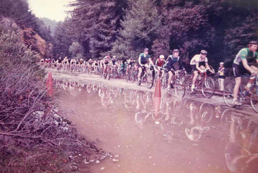 Heavy rains saturated the Bay Area during those winters and many of the cross races were classic mudfests. Instead of the manmade barriers used today, courses then were designed to force crossers over and through as many natural obstacles as possible, including creeks and rivers, huge downed redwood logs, mud pits, barbed wire fences and poison-oak covered trails.