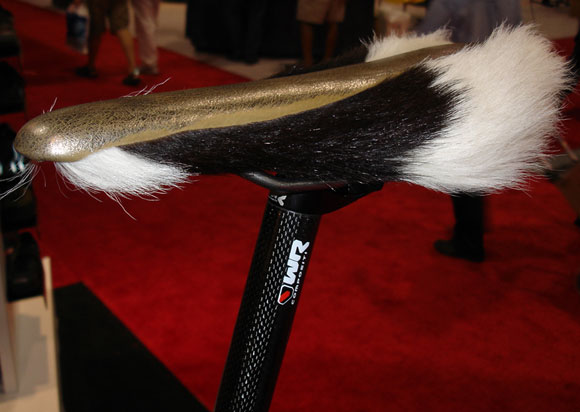 run more quietly than metal chains, too. Less practical perhaps, were some of the crazy seats, such as the skunk special below spotted on the gorgeous Pegorettis, among my picks for the finest finishes at I’bike every year. |
